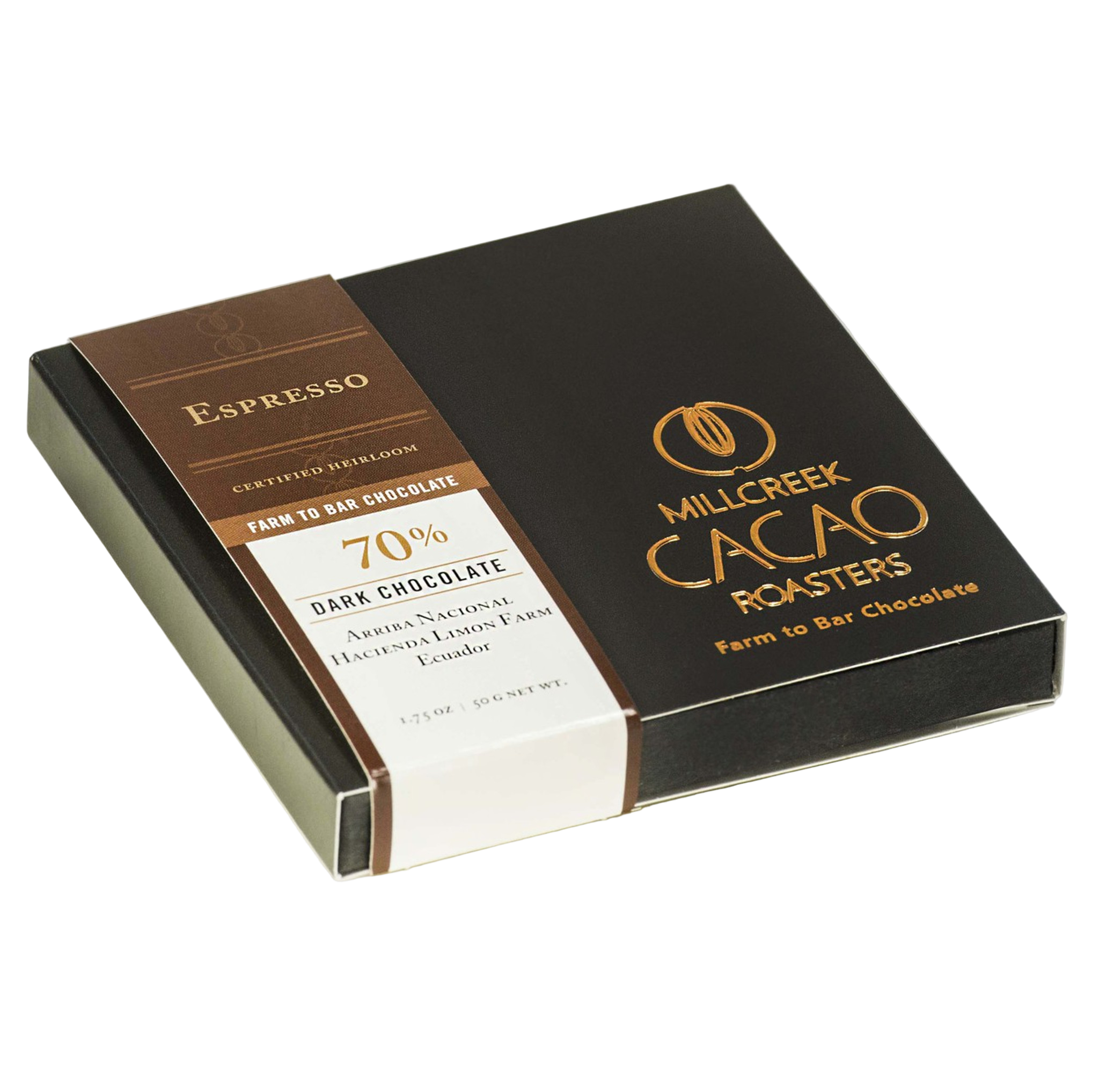 A carefully selected blend of locally roasted beans by our sister company, Millcreek Coffee Roasters, this dark chocolate bar creates an exciting convergence of two bold ingredients.