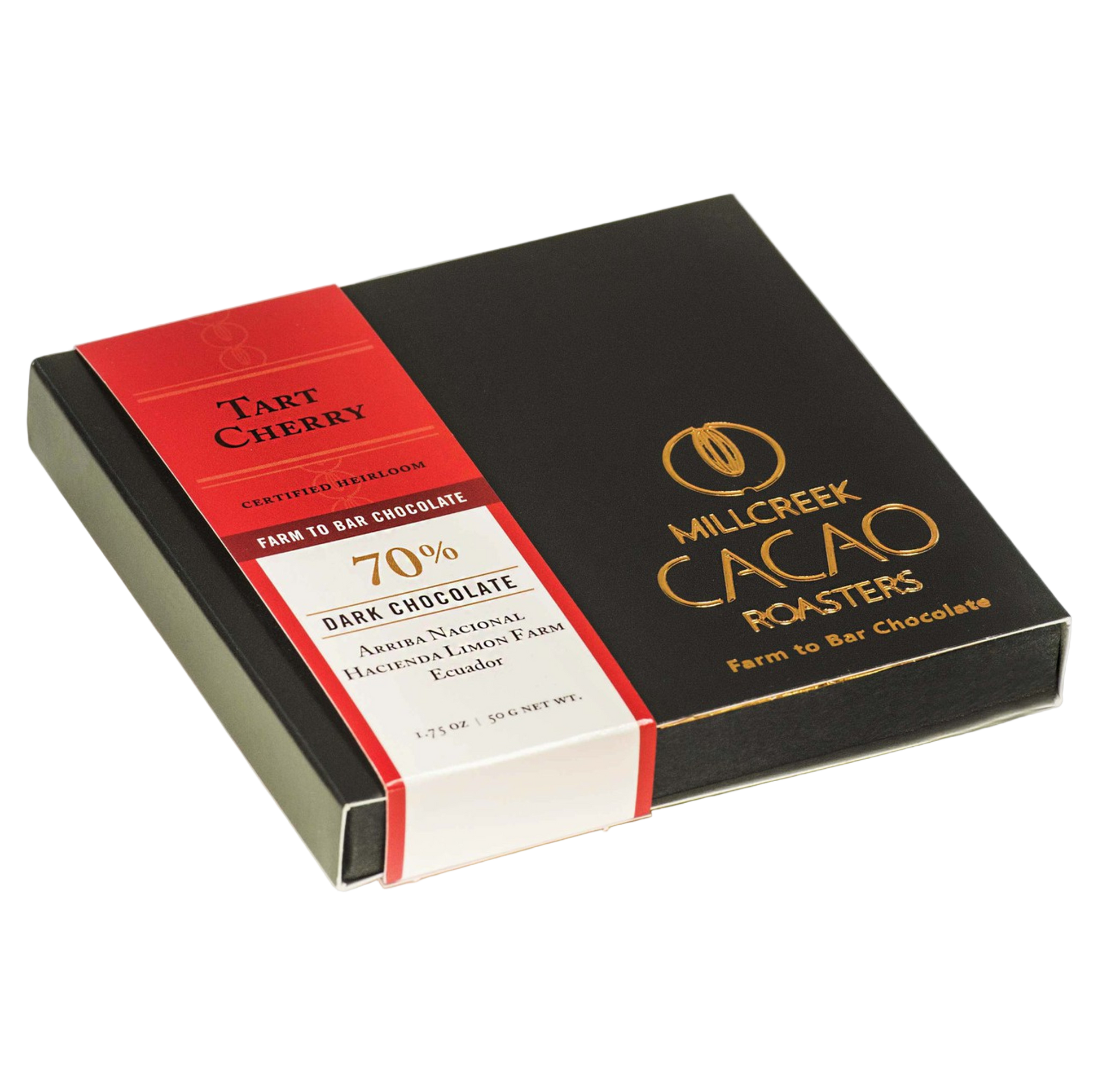 Locally sourced tart cherries magnify the cacao's natural fruit flavor.